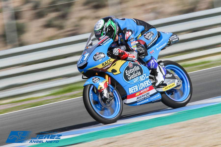 Comme leurs grandes sœurs de la catégorie intermédiaire, les Moto3 ont déjà arpenté le bitume de la piste andalouse il y a quelques jours, mais, outre le fait que les conditions de piste se sont bien améliorées depuis, Aron Canet (KTM, Sterilgarda Max Racing Team) y avait caché son jeu en se révélant le plus rapide sans toutefois inscrire le moindre chrono, puisqu’il roulait sans transpondeur.