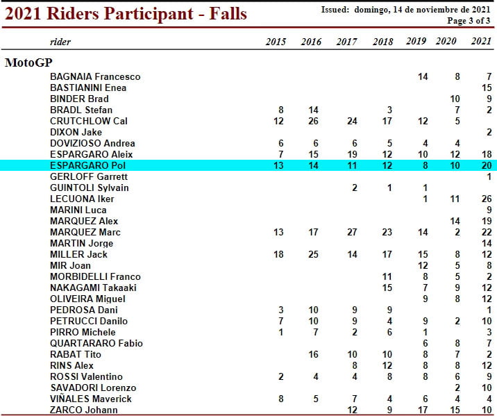 Ces deux tableaux officiels permettent de voir qu’il s’agissait de Pol Espargaró, pilote utilisant par ailleurs un casque HJC…