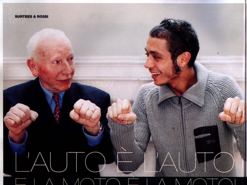 Quant à lui, John Surtees avait également fait l’éloge de Valentino Rossi lors d’une interview à Crash.net en 2004. Il avait en particulier évoqué la possibilité qu’un autre champion moto puisse devenir un jour titré en F1 : « Si quelqu’un peut le faire, en particulier en ce moment, alors c’est Valentino, car c’est un vrai pilote.