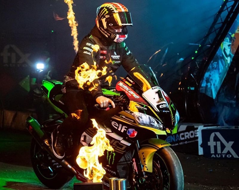 Voici Johnny Rea devant son public avec sa Kawasaki ZX-10R :