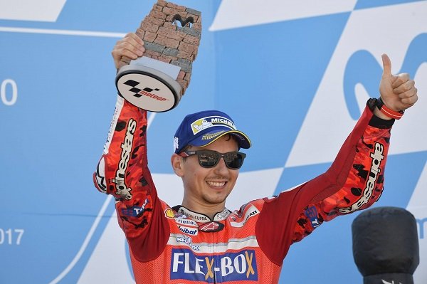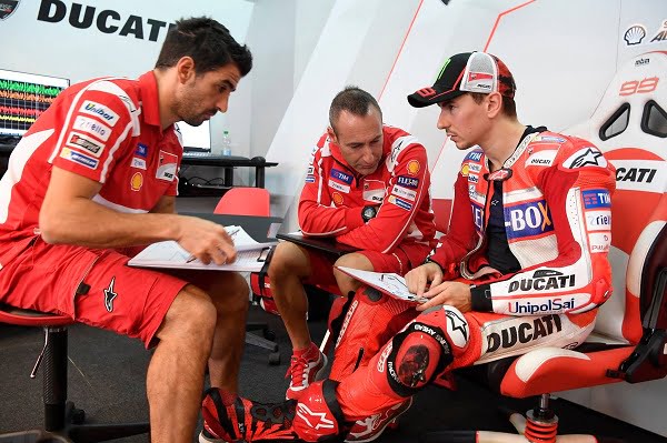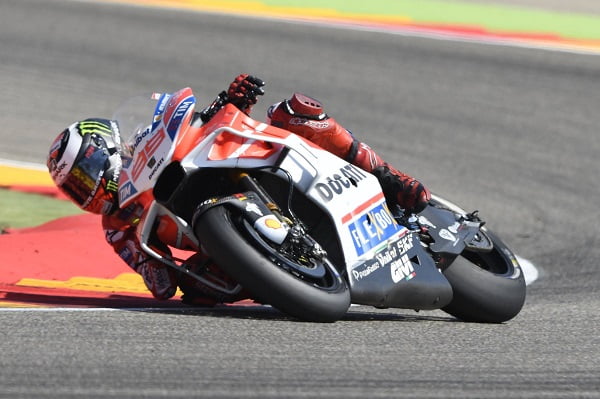 Le week-end aragonais de Lorenzo a été globalement très positif, et ce dès le vendredi sur la mouillé quand Jorge réalisait le deuxième temps sur sa Ducati. Il devait en passer par la Q1 le samedi, mais y réalisait le meilleur chrono, avant de s’installer au milieu de la première ligne en Q2, entre Maverick Vinales et Valentino Rossi.