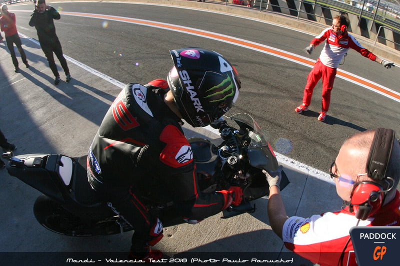 Jorge Lorenzo: « Je voudrais déjà dire quelque chose, mais je ne peux pas encore dire quoi que ce soit. Je peux seulement vous dire que je suis content et heureux. Mais il va falloir beaucoup travailler. Je ne sais pas comment sont les autres, je sais ce que j’ai trouvé et où nous pouvons faire une moto plus complète ».