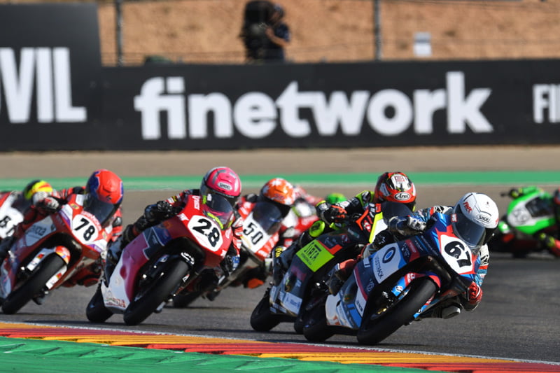 Après avoir conservé son record de 100% de pole position samedi, et avec Alex Escrig (Yamaha Philippines Stylobike Racing Team) absent pour cause de blessure, Lukas Tulovic savait qu’une victoire en course lui permettrait de remporter le Championnat d’Europe Moto2™ 2022. Le jeune homme de 22 ans n’a pas fait d’erreur pour remporter la course d’ouverture de la journée, de l’extinction des feux au drapeau à damier, de manière dominante, comme il a ensuite pris le départ dans la course 2 et a répété sa superbe performance pour quitter Aragon avec deux nouvelles victoires et un titre européen à son nom. Senna Agius et Xavier Cardelus, coéquipier de Promoracing, se sont classés respectivement P2 et P3 dans les deux courses en Aragón, marquant ainsi un excellent weekend pour les deux pilotes et l’équipe. Dans la catégorie Stock, Dani Muñoz (Fifty Motorsport) et Juan Rodriguez (Cuna Campeones) se sont partagés les victoires en Aragón.