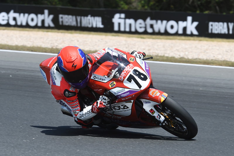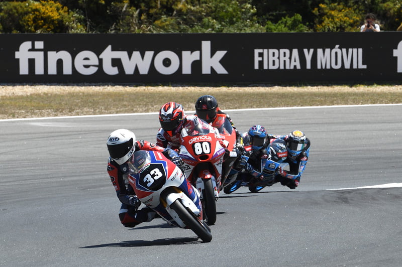 Dans la Hawkers European Talent Cup, le champion en titre Máximo Martinez (Team Honda Laglisse) a chuté dans les deux courses suite à des highsides spectaculaires ; heureusement, il s’en est sorti sans blessure. La course 1 n’a pas manqué d’action intense, Alberto Ferrández (Finetwork Mir Junior Team) s’étant accroché avec Brian Uriarte (Team Estrella Galicia 0,0) dans le virage 1 à trois tours de l’arrivée, cela mettant fin à leurs courses. En tête, Joel Esteban était dans une catégorie à part, se détachant très tôt pour inscrire sa toute première victoire avec plus de 13 secondes d’avance sur son coéquipier Dodo Boggio et l’Italien Guido Pini (AC Racing Team), tous deux marquant leur premier podium.