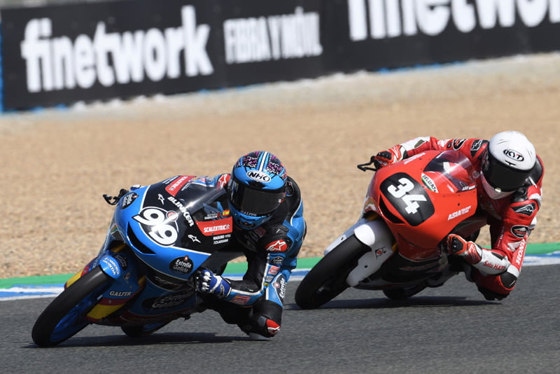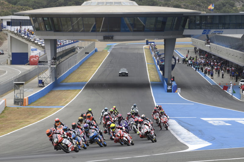 Les courses Hawkers ETC ont également été électrisantes et, dès la course 1, elles ont été dramatiques. Le Sud-Africain Ruché Moodley (Finetwork Mir Junior Team) a pris le meilleur départ avant d’être rattrapé par des pilotes comme Dodo Boggio, Brian Uriarte (Team Estrella Galicia 0,0) et le poleman Máximo Martínez (Team Honda Laglisse), tandis que Hakim Danish (SIC Racing), Rico Salmela (Team Estrella Galicia 0,0) et un impressionnant Guillem Planques (First Bike Academy &) étaient tous là aussi. Dans le dernier tour, Dodo Boggio a remporté l’honneur de donner à l’Italie une cinquième victoire dans la catégorie et de devenir le dixième vainqueur différent de la Hawkers ETC à Jerez.
