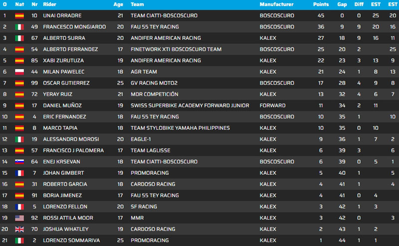 Côté français, pour diverses raison seuls Rémy Sanjuan (Larresport) et Evan Boxberger (JEG TAKE OFF GP) ont inscrit des points à la première manche au Portugal.