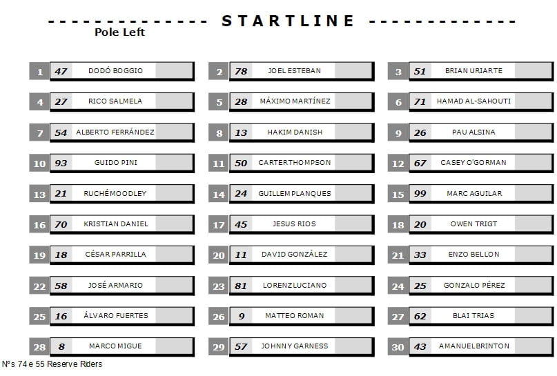 Côté français, Guillem Planques (First Bike Academy) s’est qualifié 14e, Enzo Bellon (BS Racing) 21e, et Mattéo Roman (Tecmas Racing Team) s’est repêché à la course de la dernière chance, à l’inverse de Léandro Quintans (Mediasystem) et Yannis Magnier (Équipe de France).