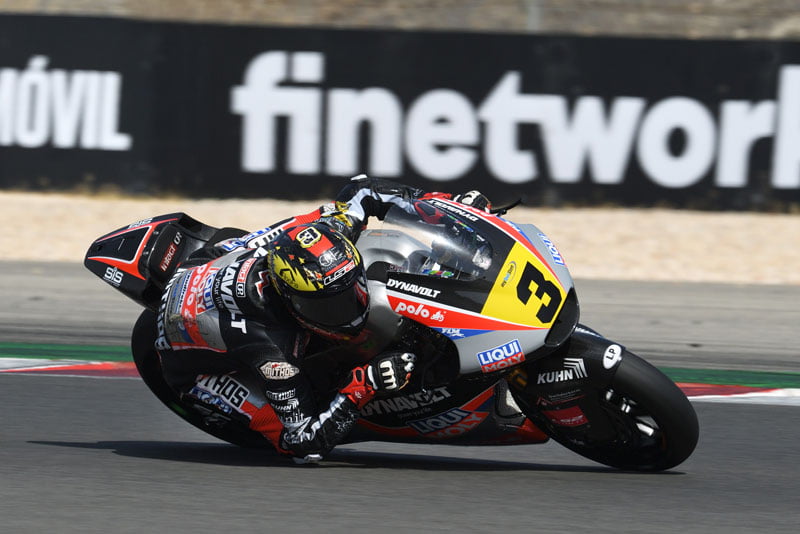 La première manche de la seconde moitié du Championnat du Monde Finetwork FIM JuniorGP™ a démarré, sur les montagnes russes de l’Autodromo Internacional do Algarve au Portugal qui accueillent la 5ème manche de la 25ème saison du championnat. Un samedi ensoleillé a offert une belle journée d’action pour démarrer le week-end avant les courses de dimanche. Adrian Cruces (Cuna de Campeones) a pris une surprenante pole position en JuniorGP™, Lukas Tulovic (Liqui Moly Intact GP Junior Team) a poursuivi sa série de qualifications sans défaite dans le Championnat d’Europe Moto2™ 2022 et Dodó Boggio (Aspar Junior Team) a obtenu sa première pole position dans la Hawkers European Talent Cup.