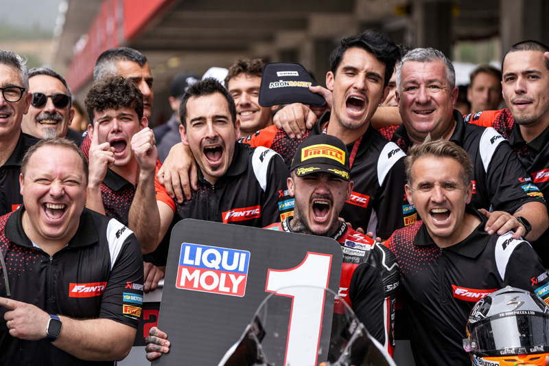 Fantic gagne en Moto2 avec Aron Canet et mène le championnat du monde : comme par le passé, la compétition est une vitrine pour l’image de la marque.
