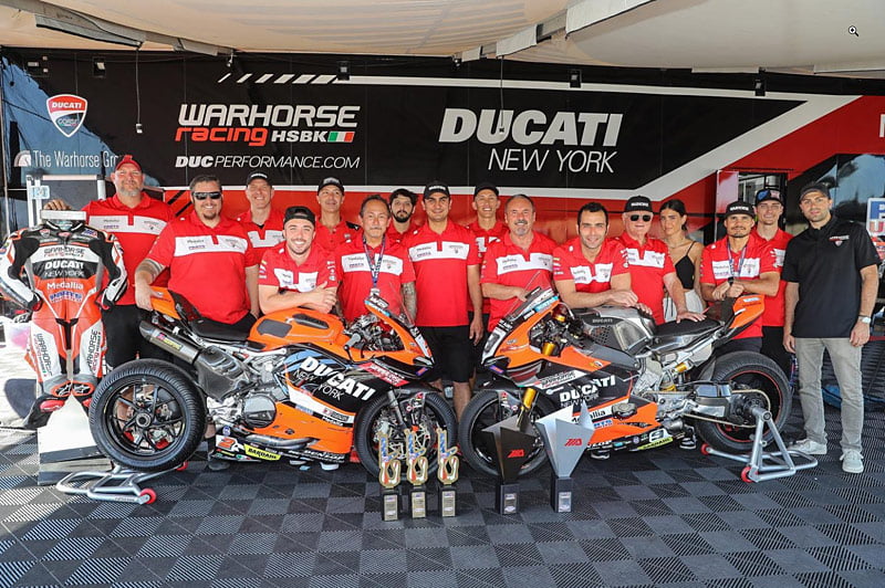 D’ailleurs, Josh Herrin, après des années de courses en Superbike, a décidé de descendre en Supersport, convaincu du potentiel du projet Ducati V2, mais aussi à cause de prix élevés. Des primes substantielles sont également attendues de la part de Warhorse : 500 dollars à chaque fois que le logo du sponsor titre apparaît sur le châssis de la V2. C’est pourquoi, à chaque victoire, Herrin se livre à de longs wheelies d’anthologie…
