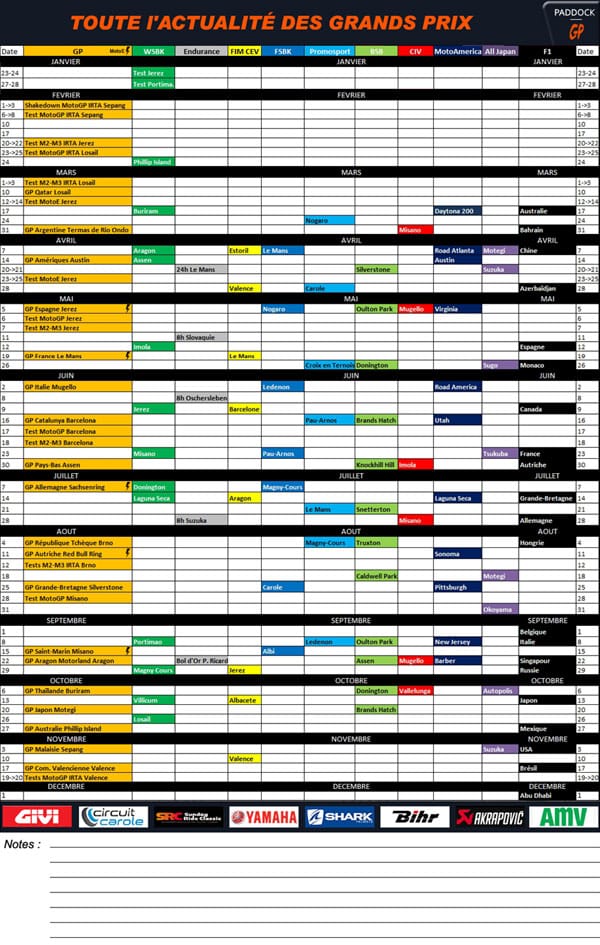 Voir notre calendrier global et imprimable ici
