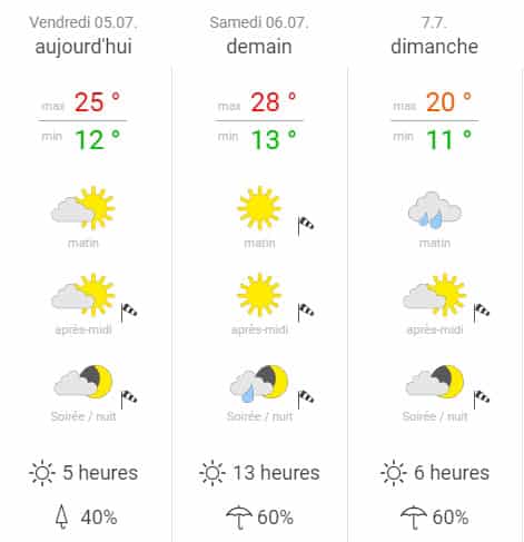 Un peu plus précise, la météo nationale prévoit effectivement la possibilité de quelques légères précipitations entre samedi soir et dimanche matin.