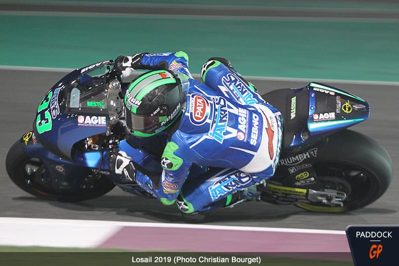 Il rejoint le team Italtrans (châssis Kalex) Moto 2 en 2019 avec l’ambition de faire mieux qu’en Moto 3. Mais, s’il termine à une encourageante 10e place au général, la récolte est faible avec un seul podium au compteur. Le natif de Rimini, expression chère à nos commentateurs TV, explose contre toute attente dès l’année suivante avec 3 victoires et 7 podiums. Bastianini remporte le titre, non sans avoir mené une lutte âpre contre ses compatriotes, Luca Marini et Marco Bezzechi, ainsi qu’un Sam Lowes qui s’annonce déjà en lice pour cette année. On se souviendra de sa course aussi intelligente que prudente lors de la dernière manche au Grand Prix de Portimão.