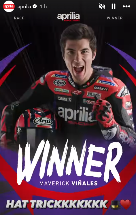 • « N’utilisez qu’un seul mot ! » Aprilia demande à ses fans de décrire la victoire de Maverick Vinales avec un unique mot.