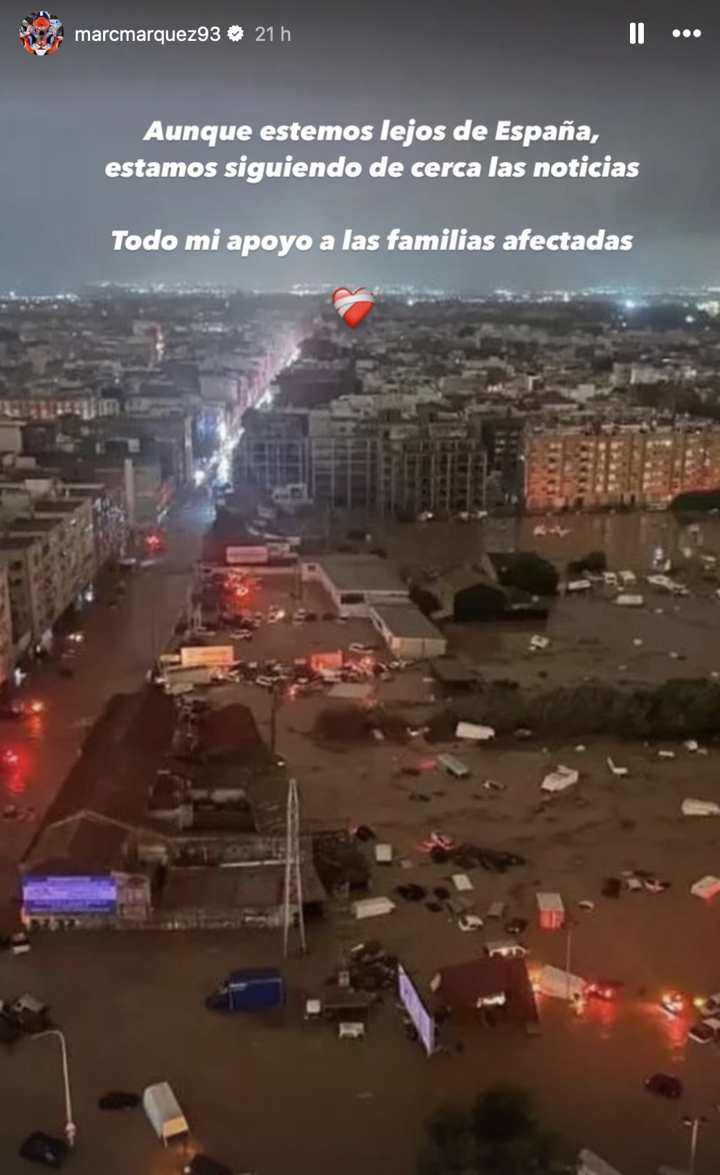 La ville de Valence, censée accueillir la finale du championnat de MotoGP 2024, fait actuellement face à une crise majeure, frappée par une tempête qui a créé d’énormes inondations. Outre la terrible situation vécue par les habitants de cette ville, le circuit n’a pas échappé aux dégâts, et de nombreuses installations qui mènent à ce dernier sont méconnaissables. Alertées par les événements depuis la Malaisie, de nombreuses personnalités du paddock ont réagi aux nouvelles. Les pilotes de MotoGP, qui sont pour la moitié d’entre eux espagnols, ont également apporté tout leur soutien à la région sur leurs réseaux sociaux. Le circuit de Valence évalue pour le moment la situation alors que les premières options en cas d’annulation émergent.