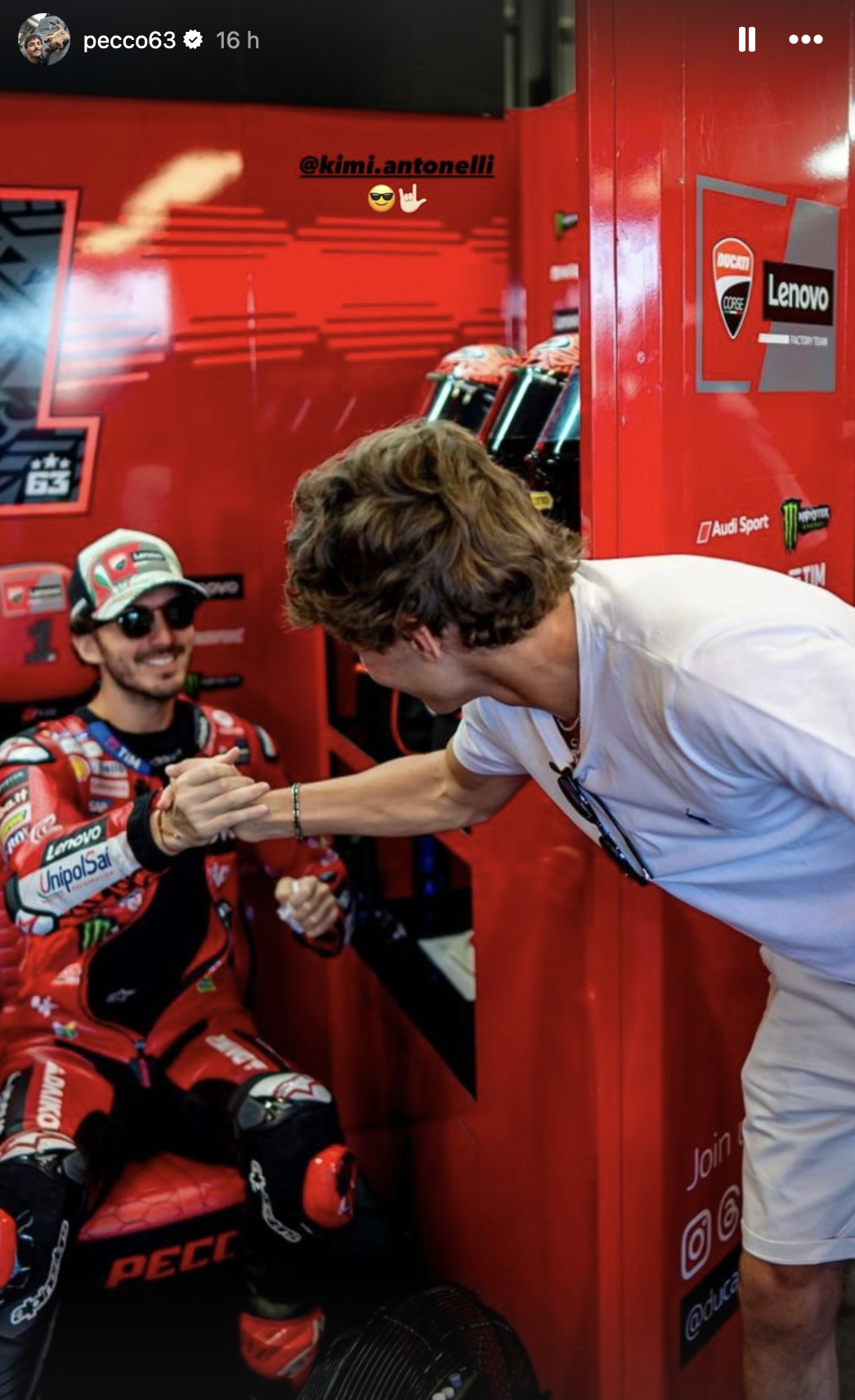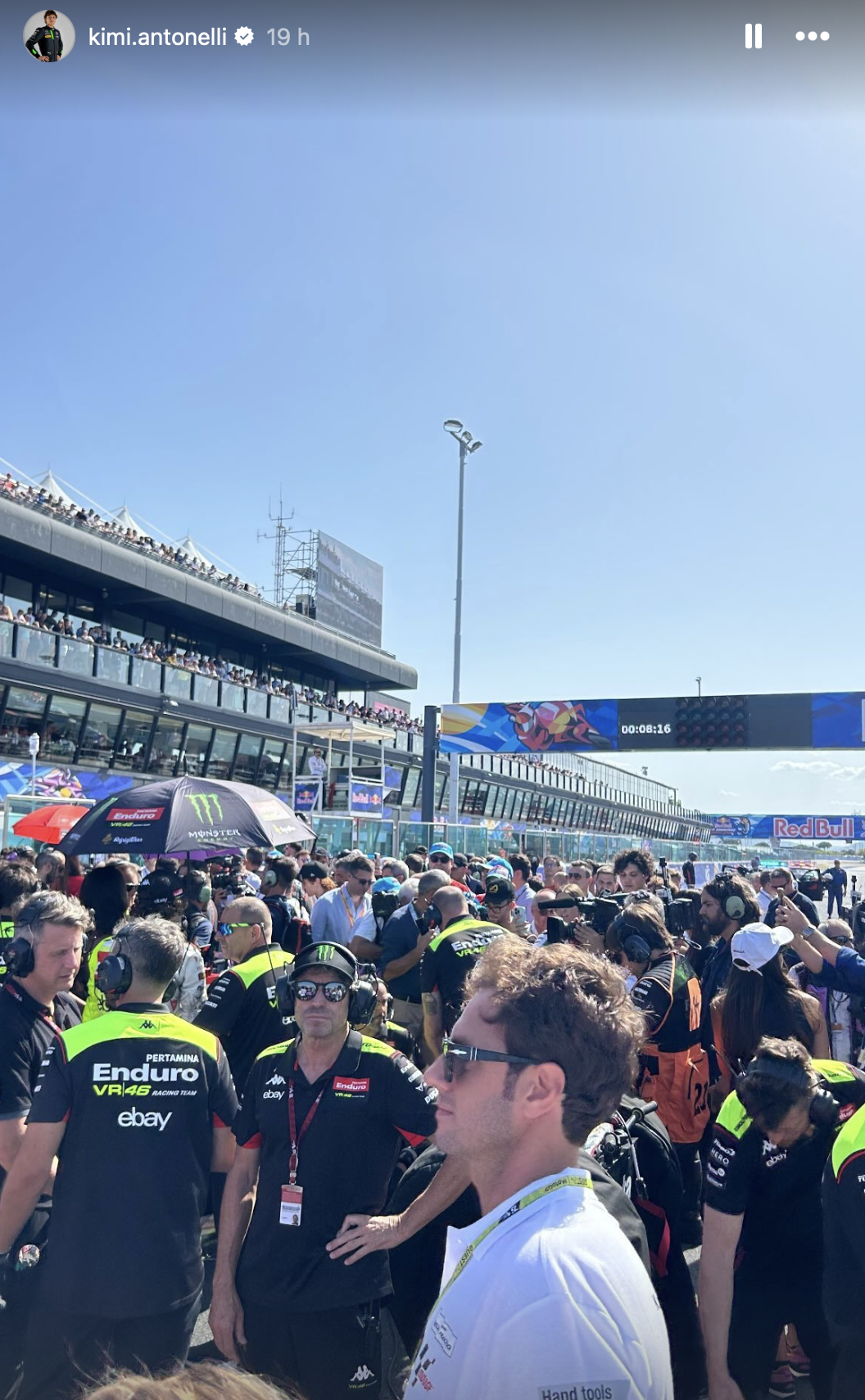 Le futur pilote de Formule 1, Andrea Kimi Antonelli, a profité du passage du MotoGP par Misano pour venir assister aux festivités. Le jeune Italien, qui remplacera le septuple champion du monde, Lewis Hamilton, chez Mercedes l’an prochain, s’est ainsi installé chez Aprilia pour vivre le Sprint MotoGP avec la structure de Noale. Il est ensuite allé saluer ses compatriotes, à l’image de Pecco Bagnaia et Marco Bezzecchi. Le pilote de 18 ans a également été aperçu en train d’échanger avec Valentino Rossi, présent à Misano ce week-end pour soutenir les représentants de la VR46 Riders Academy. Fabio Quartararo faisait lui aussi partie de la tournée des stands de Andrea Kimi Antonelli.
