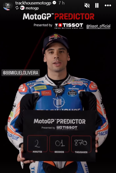 • 2:01.870, Miguel Oliveira établit ses pronostics quant au temps qui sera effectué par le pilote qui signera la pole position.
