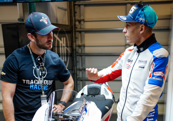 Les pilotes MotoGP de Trackhouse Racing ont fait découvrir leur machine aux deux intéressés : échange de bons procédés.