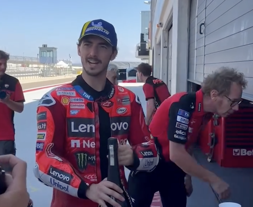 Après la spectaculaire victoire de Marc Márquez au Grand Prix d’Aragon 2025, la célébration dans le box de Ducati a pris une tournure aussi conviviale qu’inattendue. Lors de la traditionnelle fête de la victoire, Marc Márquez éprouvait des difficultés à ouvrir les bouteilles de Prosecco apportées par l’équipe. Son équipier, Pecco Bagnaia, a donc décidé qu’il donnerait une leçon au n°93 pour lui apprendre à le faire.