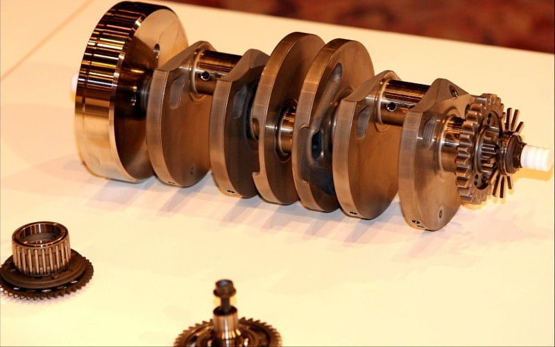 Enfin, un angle en V de 75,5° a permis un équilibre primaire parfait. C’était effectivement un V4 avec un piston supplémentaire équilibrant le reste. Il n’était pas nécessaire d’avoir un arbre d’équilibrage. Le calage moteur était, déjà à l’époque, de type Big Bang.