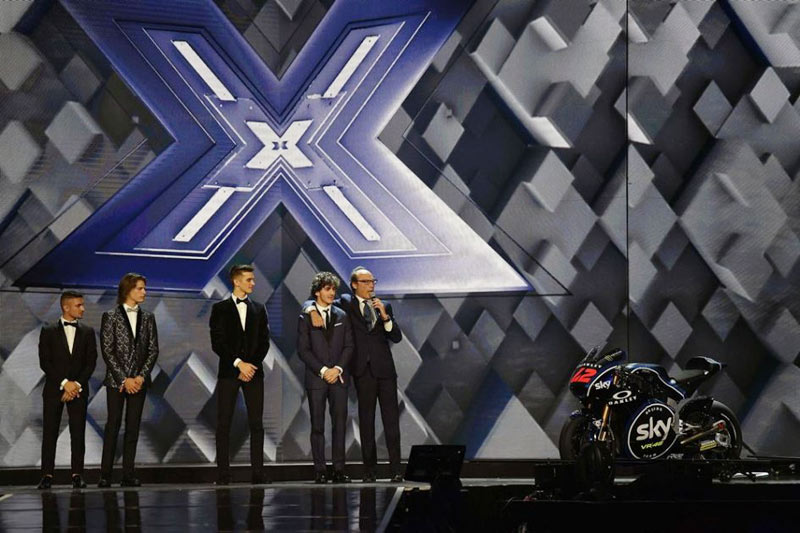 C’est dans le cadre de la finale de l’émission X Factor tournée dans le Mediolanum Forum à Assago (banlieue de Milan), évidemment diffusée sur la chaîne italienne Sky, que le team de Valentino Rossi a présenté les nouvelles couleurs qui orneront ses Moto2 et Moto3 l’année prochaine.