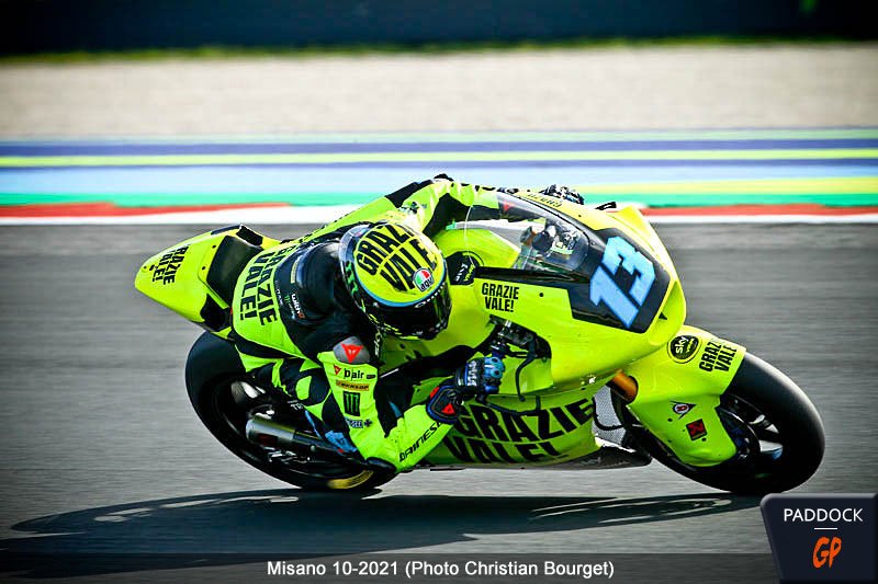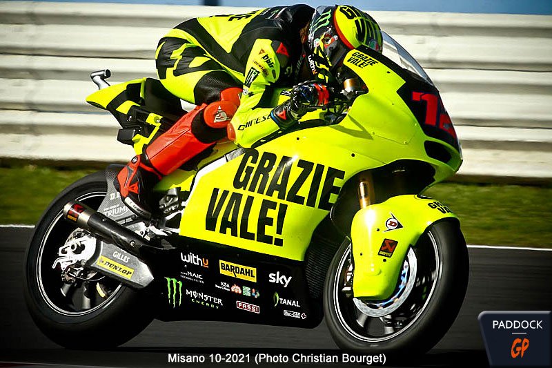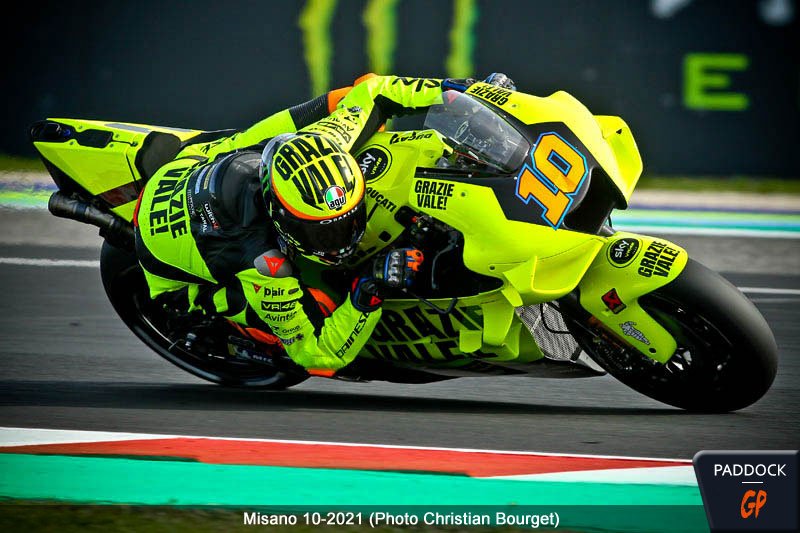 Enfin, pour remercier son médiatique patron pour sa dernière course à domicile, la VR46 a badigeonné du jaune le plus vif les Moto2 de Marco Bezzecchi et Celestino Vietti, ainsi que la Ducati de Luca Marini en MotoGP.