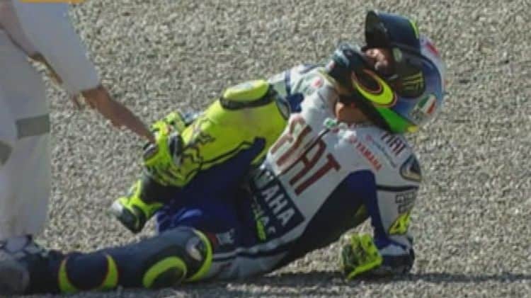 Ce moment est un tournant de la décennie, ainsi que dans la carrière du concerné. Rossi part pour Ducati l’année suivante, quittant Yamaha après sept ans de bons et loyaux services. Il revient fort de cette blessure, mais a du mal à jouer la gagne. Il prend tout de même une victoire lourde de sens en Malaisie. Ironie du sort, Lorenzo est sacré champion du monde pour la toute première fois en terminant troisième de cette joute asiatique.