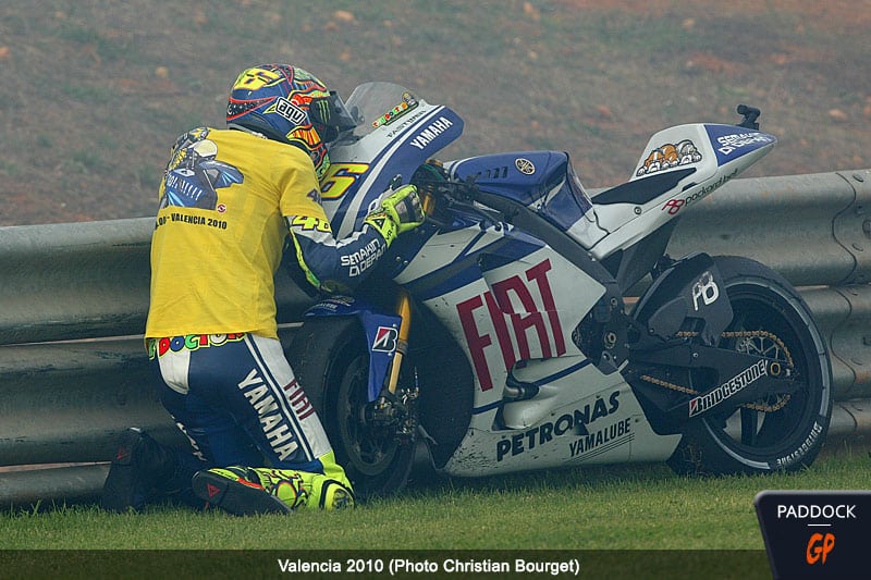 La barre est haute, et les médias italiens n’aident pas. Rossi, l’un des tout meilleurs pilotes que le championnat du monde ait connu, désire gagner sur une moto italienne. Le coup de pub serait absolument énorme, et « Vale » entérinerait d’autant plus son statut de légende vivante. Cependant, en cas d’échec, ceci pourrait le suivre longtemps. Et honnêtement, personne ne s’attendait à autant de galères. Dès les premiers tours de roues, tous les spectateurs comprennent : les deux années vont être longues … très longues.