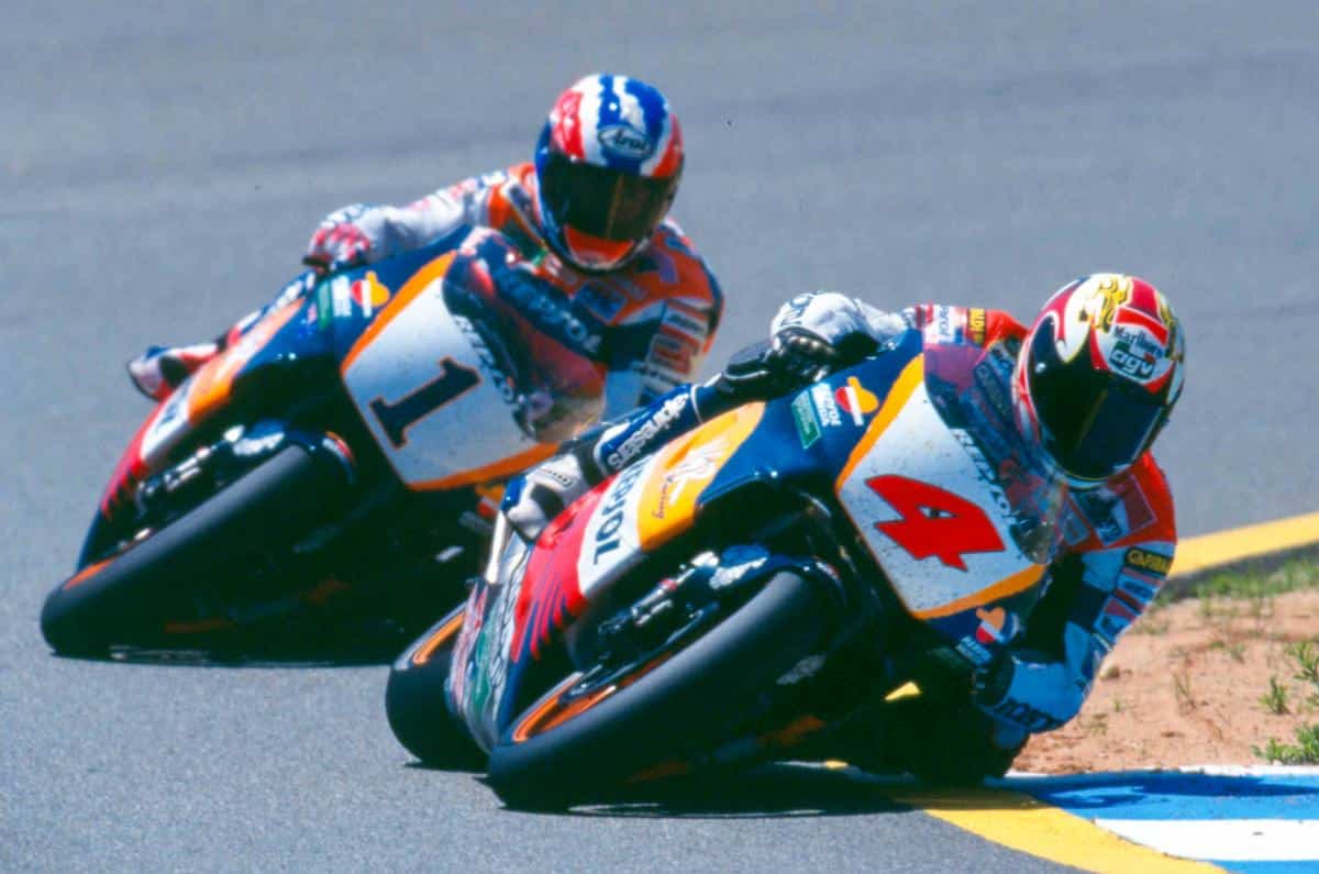 Elle se poursuit en 1999, mais sans la star australienne, blessée. Crivillé s’occupe de prendre le titre de champion du monde malgré tout. Okada est troisième, Gibernau deux places derrière. Même le très sexy duo Biaggi/Checa chez Yamaha n’y peut rien.