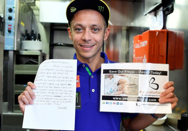 Cette lettre fait partie de l’histoire moderne de la MotoGP .William Favero (directeur marketing et communication de Yamaha) a fait don de la lettre écrite de la main de Valentino, avec l’approbation de Valentino, à #acureforfreyja. Cette lettre manuscrite a été utilisée dans le cadre d’un communiqué de presse lors du départ du pilote italien de Yamaha en 2010.