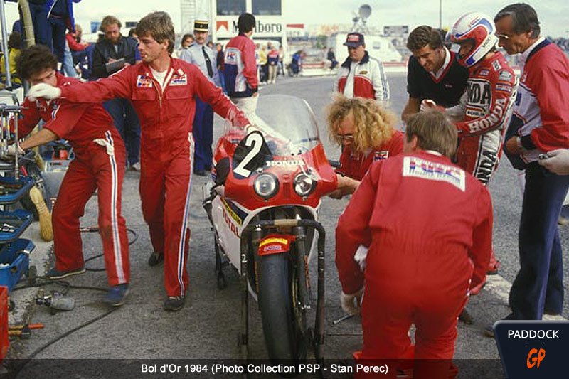 Fin 82, début 83, le Japon avait clairement décidé de faire grossir ses activités racing pour promouvoir le road racing, les courses sur route, car il y avait une nouvelle architecture moteur, une nouvelle technologie, qui était le V 4. Et pour supporter le lancement du V 4, la la compétition était bien l’outil numéro un. Plus dans les championnats tout-terrain auxquels on était impliqué en tant que Honda France, les rallyes africains, avec un point d’orgue, les monocylindres commençaient à tirer la langue sérieusement face aux bicylindres BMW, et donc on allait assister à la création une ou deux années plus tard, de la NXR Honda. Donc Monsieur Guillou a décidé d’augmenter son staff du service compétition, puisqu’il était directeur du service compétition de Honda France, tête de pont directs de Honda Motor et de son service course qui s’appelait HRC, et il a décidé d’embaucher Guy Coulon comme directeur technique et ma pomme, Hervé Poncharal, comme son adjoint. Mon titre, c’était adjoint du directeur du service compétition. Et donc quand il a embauché Guy et moi, évidemment, Monsieur Guillou a été le trait d’union qui a fait que Guy et moi, on s’est retrouvé à travailler ensemble, à se connaître, et même si on a fait une petite décennie avec Monsieur Guillou, une décennie plus tard Guy et moi avons décidé de quitter le navire Honda France pour voler de nos propres ailes, et créer Tech3. Donc si on veut faire un petit raccourci, je pense que Jean-Louis Guillou, quelque part, c’est lui qui est à l’origine de la rencontre et de l’association Hervé-Guy, et quelque part c’est notre parrain.