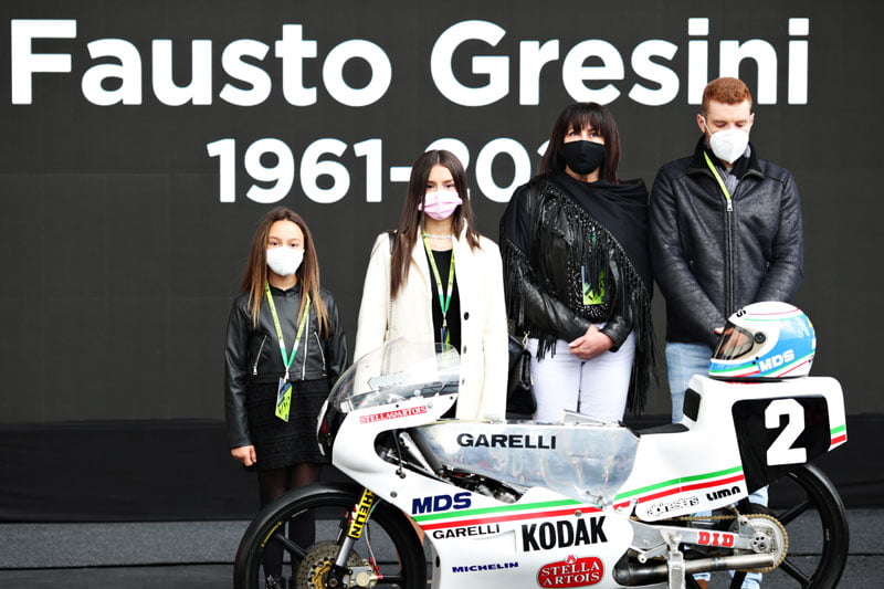 Nadia Padovani, propriétaire de l’équipe Gresini Racing : « En mon nom, au nom de mes enfants et de tout le Gresini Racing, je tiens à remercier, du fond du cœur, Stefano Domenicali et Carmelo Ezpeleta d’avoir uni le monde des sports mécaniques pour commémorer Fausto, un grand homme dans la vie et dans le sport. Nous sommes immensément reconnaissants et émus de cet hommage merveilleux et inattendu. »