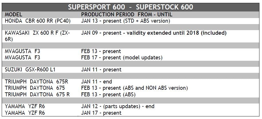 – pour le Championnat Européen de Moto2 (seulement pour la classe Superstock 600)