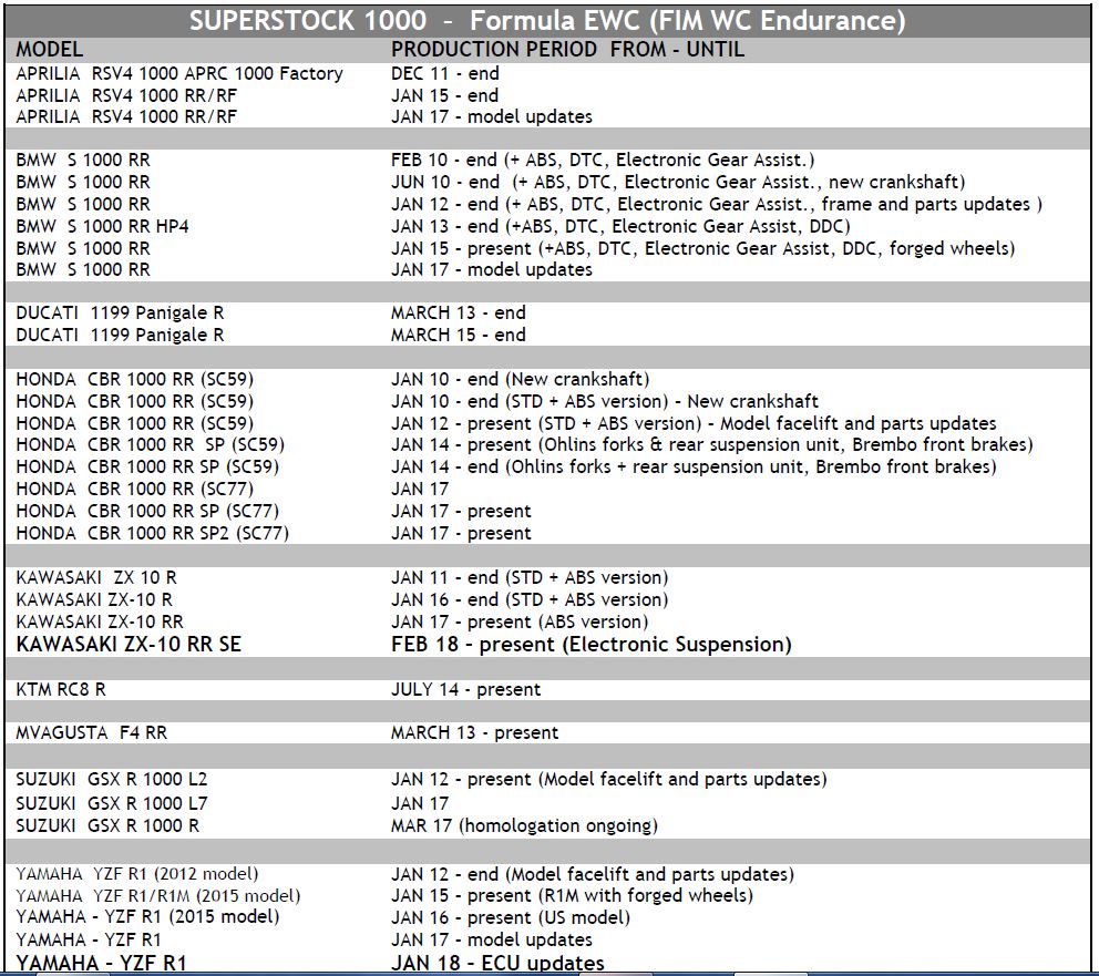 – pour la Coupe du Monde FIM d’Endurance (classe Superstock)
