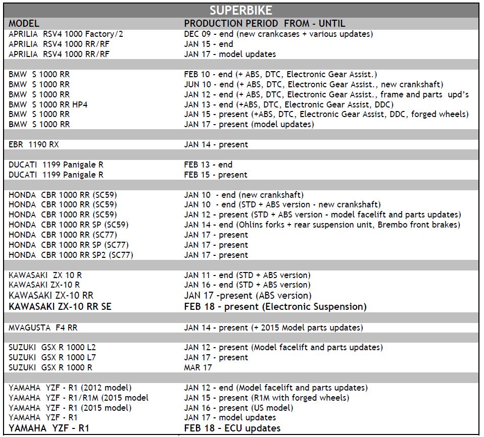 – pour le Championnat du Monde FIM Superbike