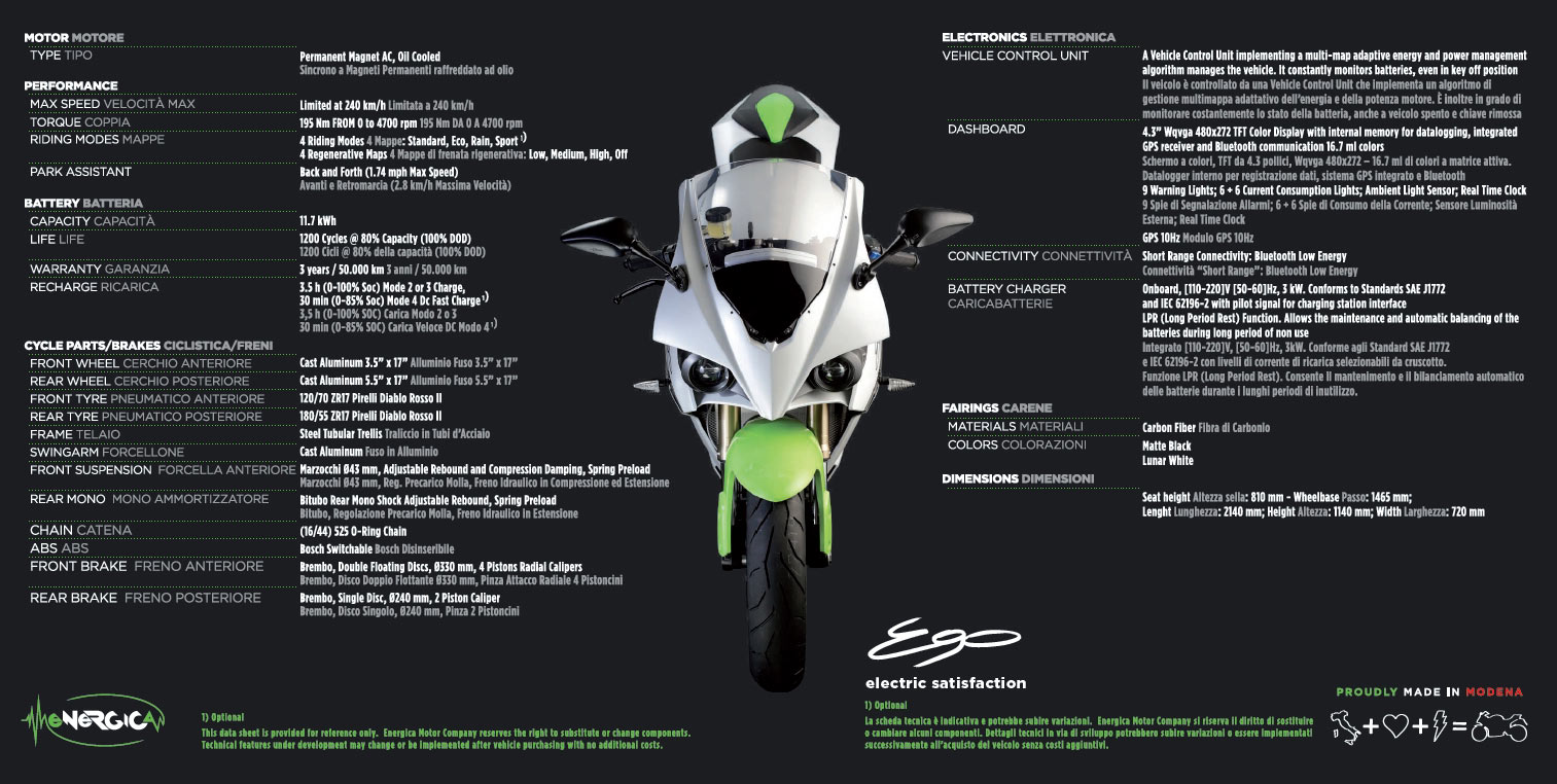 Dorna est ravie d’annoncer que le fournisseur de ce nouveau projet sera l’innovateur italien Energica Motor Company, basé dans la région de Modena. Le modèle qui sera utilisé par les équipes pour la nouvelle compétition sera une version optimisée de la Energica Ego.
