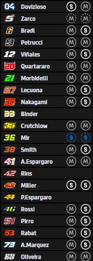 Dovizioso, Mir, Miller (Voir ici) |