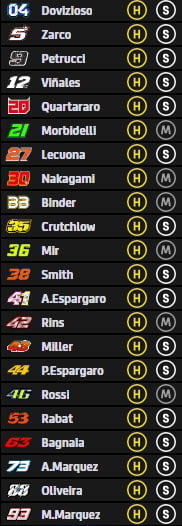Voici les références au moment où les pilotes se préparent à entrer en piste, avec une interrogation concernant Alex Rins qui a fait l’impasse se matin :