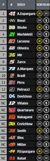 Pol Espargaró, Andrea Dovizioso, Maverick Viñales, Jack Miller, Takaaki, Álex Rins, Miguel Oliveira, Joan Mir, Franco Morbidelli et Fabio Quartararo iront directement en Q2 et vont maintenant pouvoir peaufiner leur rythme en vue de la course.