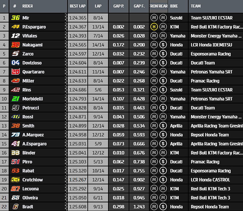 Tout semble extrêmement serré et c’est cette fois au tour de Joan Mir de s’imposer en tête du classement, en 1’24.365.