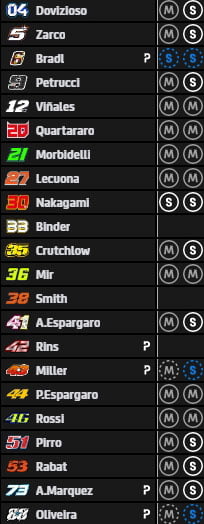 Classement Warmup du Grand Prix d’Autriche MotoGP au Red Bull Ring :