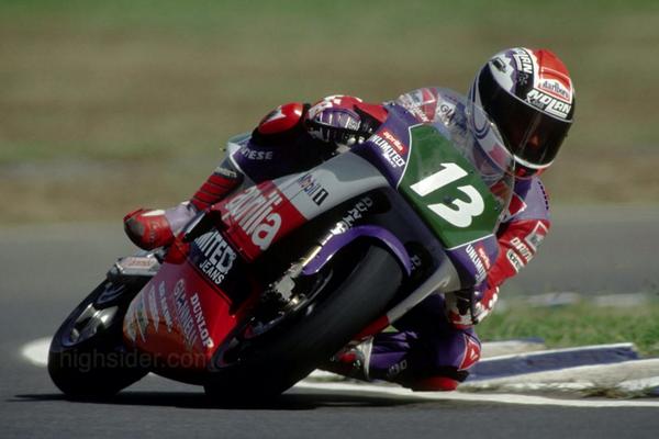 Il y a 30 ans, le 30 août 1987, Reggiani remportait la première victoire d’Aprilia en GP 250 sur le circuit de Misano, devant la Yamaha de Luca Cadalora et la Honda de Sito Pons. Il gagnait 8 Grands Prix en 125 et 250, terminant deuxième du Championnat du Monde 250 en 1992 et 93, avant d’effectuer deux saisons en 500, toujours sur Aprilia.