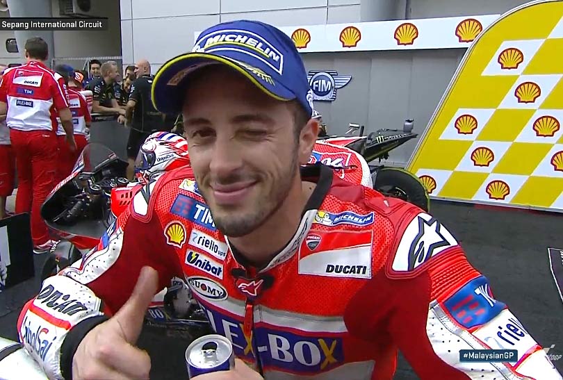 A peine descendu de sa Ducati GP17 officielle après avoir remporté ce Grand Prix de Malaisie, c’est en sauvant un espoir pour le titre mondial que Andrea Dovizioso s’est confié au micro du site officiel MotoGP.com.