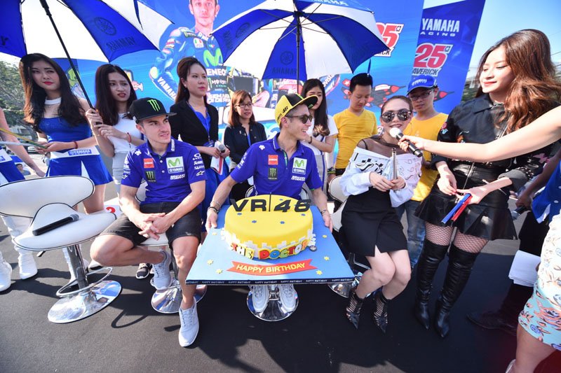 Lors de cet événement, tenu à Ho Chi Minh, Rossi et Vinales se sont rendus à l’Yriders Event, où le pilote Tavullia a reçu un gâteau d’anniversaire par avance (il fêtera ses 38 ans le 16 février). Plus tard, le duo Yamaha a fait plaisir aux fans en faisant quelques tours de scooters sur un petit circuit.