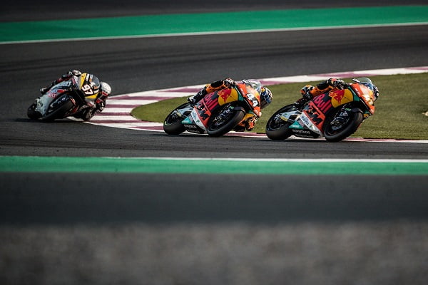 Mais on ne trouvait que deux KTM parmi les dix premier au Qatar voici peu, avec Oliveira cinquième et Brad Binder sixième, au milieu de huit Kalex. Derrière le vainqueur Pecco Bagnaia (SKY VR46) et le deuxième Lorenzo Baldassarri (Pons HP 40), Michael Bartholémy, plaçait Alex Marquez en troisième position pour le Marc VDS Racing.