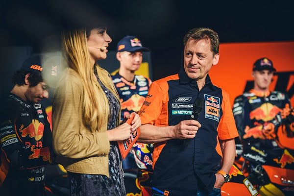 Quand KTM a lancé son projet MotoGP, l’idée a été de réunir aux postes de responsabilité autant d’Autrichiens que possible. C’est ainsi que celui de team manager a été attribué à l’ancien pilote de GP 125 Michael « Mike » Leitner, en le débauchant de l’équipe Repsol Honda où il officiait en tant que responsable technique de la moto de Dani Pedrosa.
