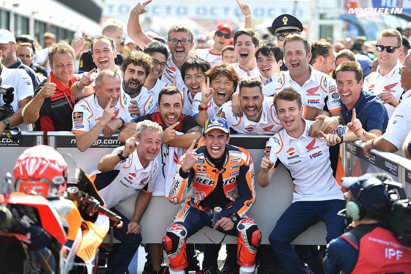 « Oui. Bien sûr, je sais que nous avons des points très faibles. Nous travaillons dessus et je sais qu’il est très difficile de piloter d’une bonne manière. Aujourd’hui durant la course, peut-être que les caméras ne l’ont pas montré, mais j’ai évité deux ou trois chutes grâce à mon style avec le coude. Peut-être que les autres Honda, quand par exemple Cal perd l’avant, chutent, et alors bien sûr la confiance s’amoindrit. Mais je savais que j’avais cette petite chance supplémentaire, ou ce petit extra avec mon coude, pour éviter la chute. C’est pour cette raison que j’ai toujours attaqué à 100 %. Mais Honda travaille vraiment très dur pour avoir une moto compétitive pour tout le monde, et le plus important est que mes commentaires, ceux de Crutchlow et ceux de Lorenzo, aillent dans la même direction. Nous essayons d’améliorer pour l’année prochaine car nous pouvons voir que les adversaires, Yamaha, Suzuki, travaillent très dur et sont de mieux en mieux à chaque course. C’est une chance pour le MotoGP, mais le pilote fait encore davantage de différence que la moto. »