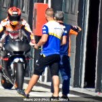 Sous un beau soleil chauffant l’air à 29°, nous avons pu observer en piste le team Repsol Honda avec Marc Márquez, le team KTM avec Pol Espargaro et Randy de Puniet, le team Aprilia avec Aleix Espargaro, ainsi que le Honda test team avec Stefan Bradl.