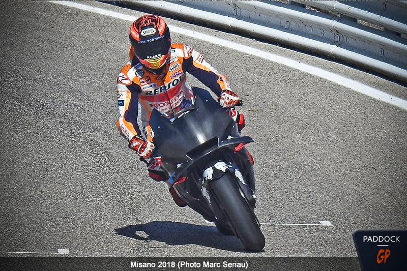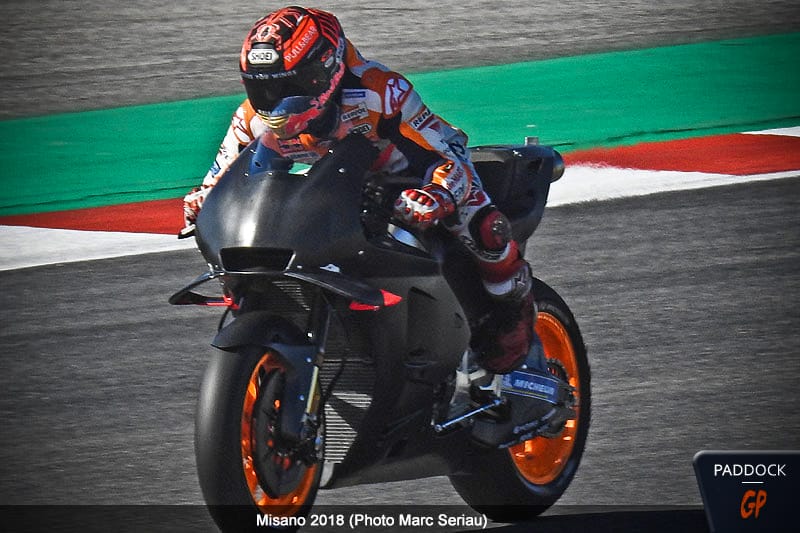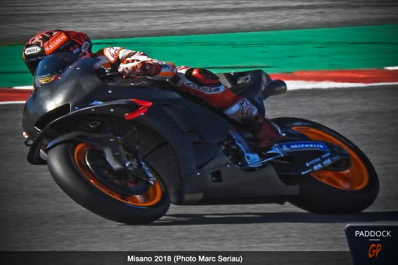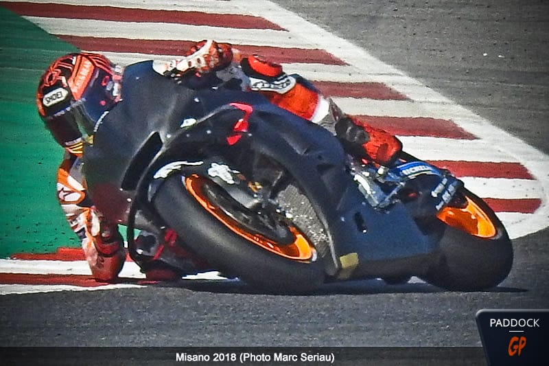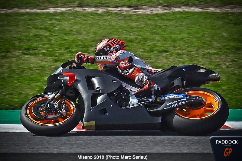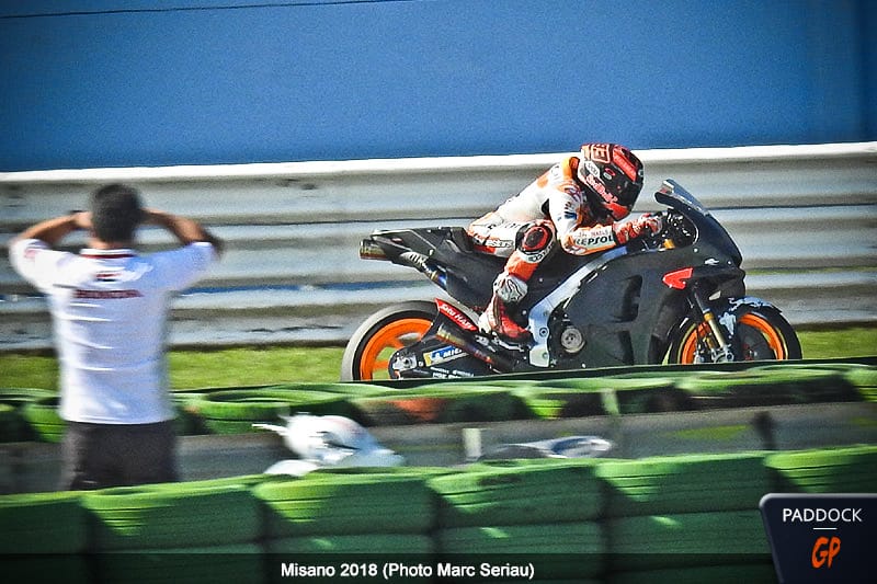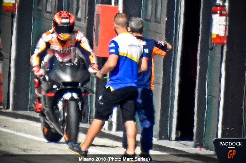 Marc Márquez utilisait un de ses prototypes pré-2019, sur lequel nous n’avons pu noter aucune différence visuelle avec sa machine habituelle.