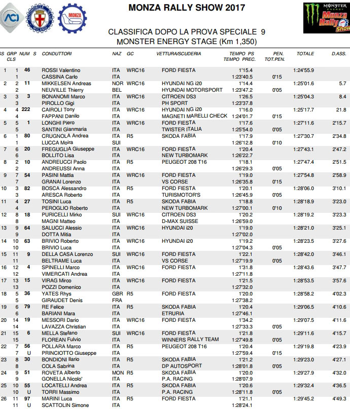 Malgré deux pénalités infligées, Valentino Rossi vient de remporter pour la sixième fois, et la troisième fois consécutive, le Monza Rally Show au volant de sa Ford Fiesta WRC.